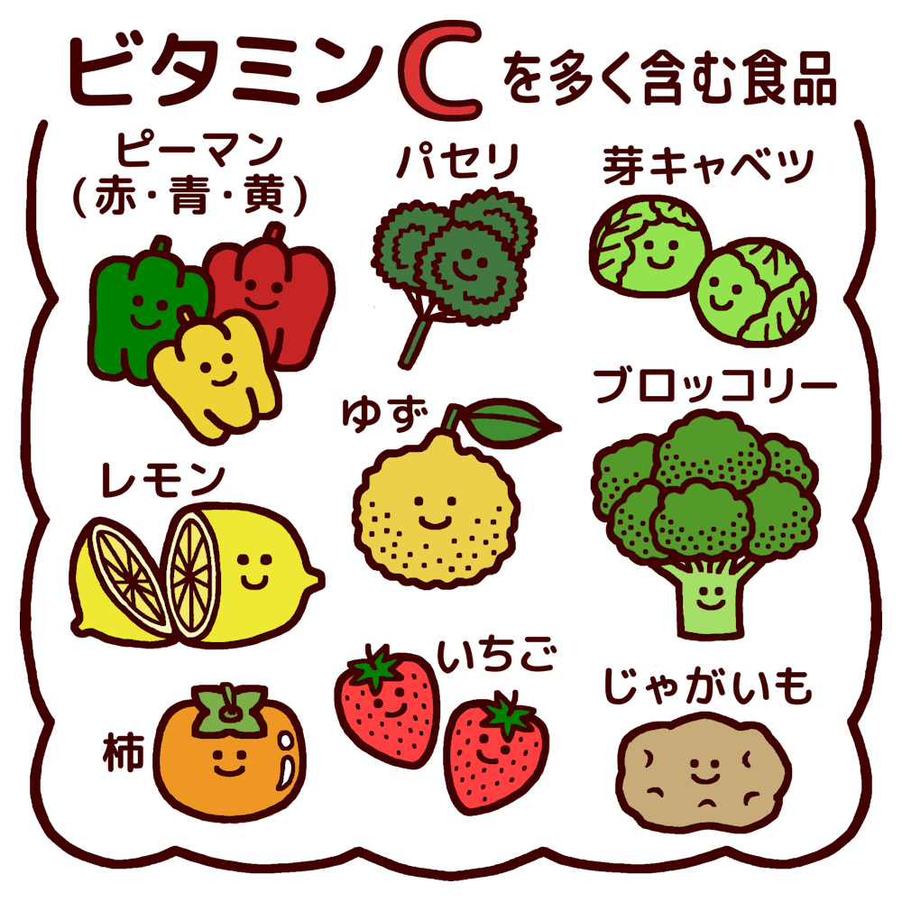 柑橘類・ブロッコリー・パプリカ・じゃがいもなどからしっかり補いましょう。